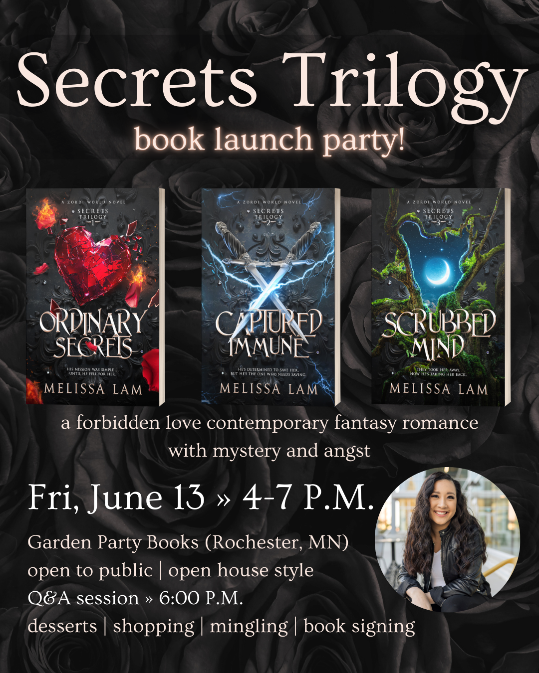 Come celebrate Rochester author Melissa Lam and the publication of her Secrets Trilogy—a forbidden love contemporary fantasy romance with mystery and angst!